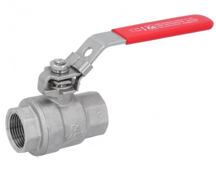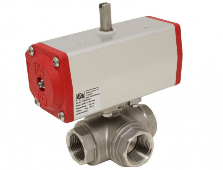 Ball valve ball valve-PD, 3/4", M. Antrieb-EE, EW63, stainless steel/PTFE, L-Borehole, springback.