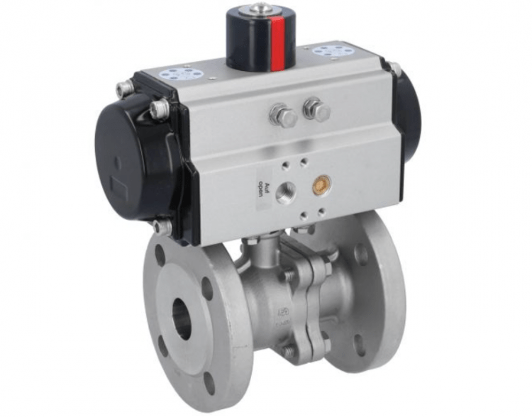 Ball valve ball valve-PD, 11/2", M. Antrieb-ED, DW63, Stainless steel/PTFE, L-bore,double-acting