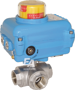 Ball valve-TN, 1", with drive-NE05 Ms./PTFE-FKM, T-thread, 24V DC, time. crab. ca. 8sec